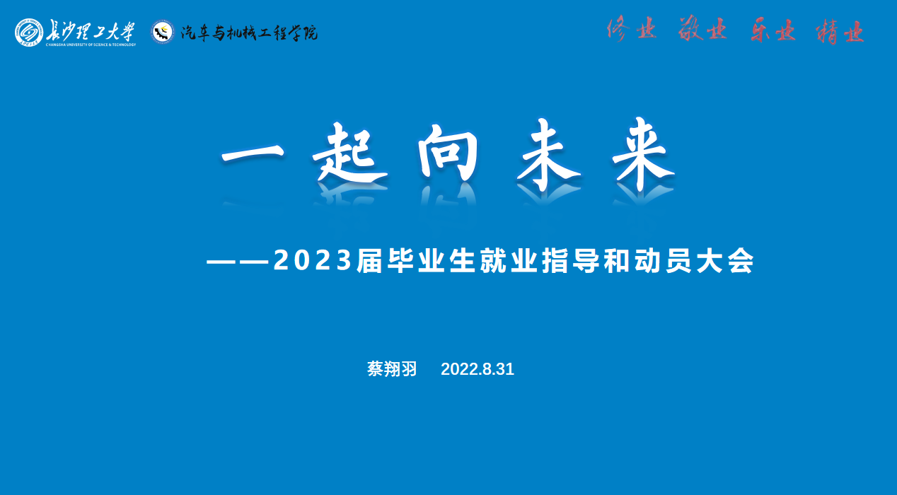 王金行老师从新学期、新形势下的疫情防控政策、请假制度、校园安全、学风学情、寝室卫生与安全等方面对年级整体情况进行了分析和介绍,作为陪伴大家成长的年级辅导员,王老师寄语大家:百尺竿头、更进一步,祝大家圆梦之旅的最后一年,充实且快乐,坚定且顺利。接下来是2023届毕业生就业指导和就业动员,蔡老师从学校发展、毕业生形势和历届毕业生就业数据详细的分析了我院毕业生的就业情况,从就业市场、签约流程、注意事项等方面,对毕业生求职和签约进行指导,并鼓励大家在求职过程中要自信从容,做敢于有梦、勇于追梦、勤于圆梦的长理青年。