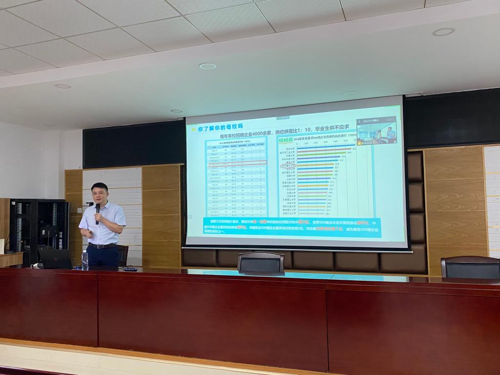 在职业发展与就业指导课上,蔡翔羽从就业市场的角度带领新生认识到就业过程中的母校优势、专业优势和学历优势;同时也向新生展示了目前就业市场的真实数据,以及将来的就业形式,其中包括应征入伍、读博(留学)、企业校园招聘(国企,名企,外资)、公务员(国考,省考,选调生),三支一扶、特岗教师、西部计划等等,极大丰富大家的选择面;最后蔡翔羽向大家分享了往届校友择业时的重点行业及重点企业,同时也向同学们分享了学长学姐在择业以后的职场成长故事,鼓励大家只要不掉队,都将未来可期!蔡翔羽勉励大家要:敢于有梦、勇于追梦、勤于圆梦。