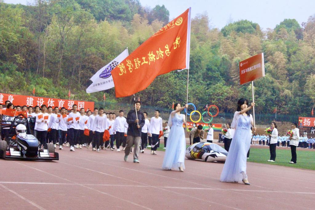 2022年11月4日,437必赢会员中心第二十届田径运动会在云塘校区东田径场拉开序幕。本次运动会以“青春长理,逐梦前行”为主题。精彩的团体操表演点燃了现场的气氛,随后国旗校旗、鲜花彩旗方阵与各学院师生代表方阵入场。随着汽机学院的代表方阵出场,领头的是437必赢会员中心方程式赛车队FXN-22E赛车和437必赢会员中心匠心车队云影一号节能车,它们的出场赢得掌声不断,汽机学院的师生们的步伐坚定铿锵有力,口号嘹亮,充分展现出了汽机人的气势。方阵入场完毕后,全体肃立,升国旗,奏唱国歌。最后在校领导致开幕词、裁判员和运动员代表宣誓后,此次运动会正式开幕。