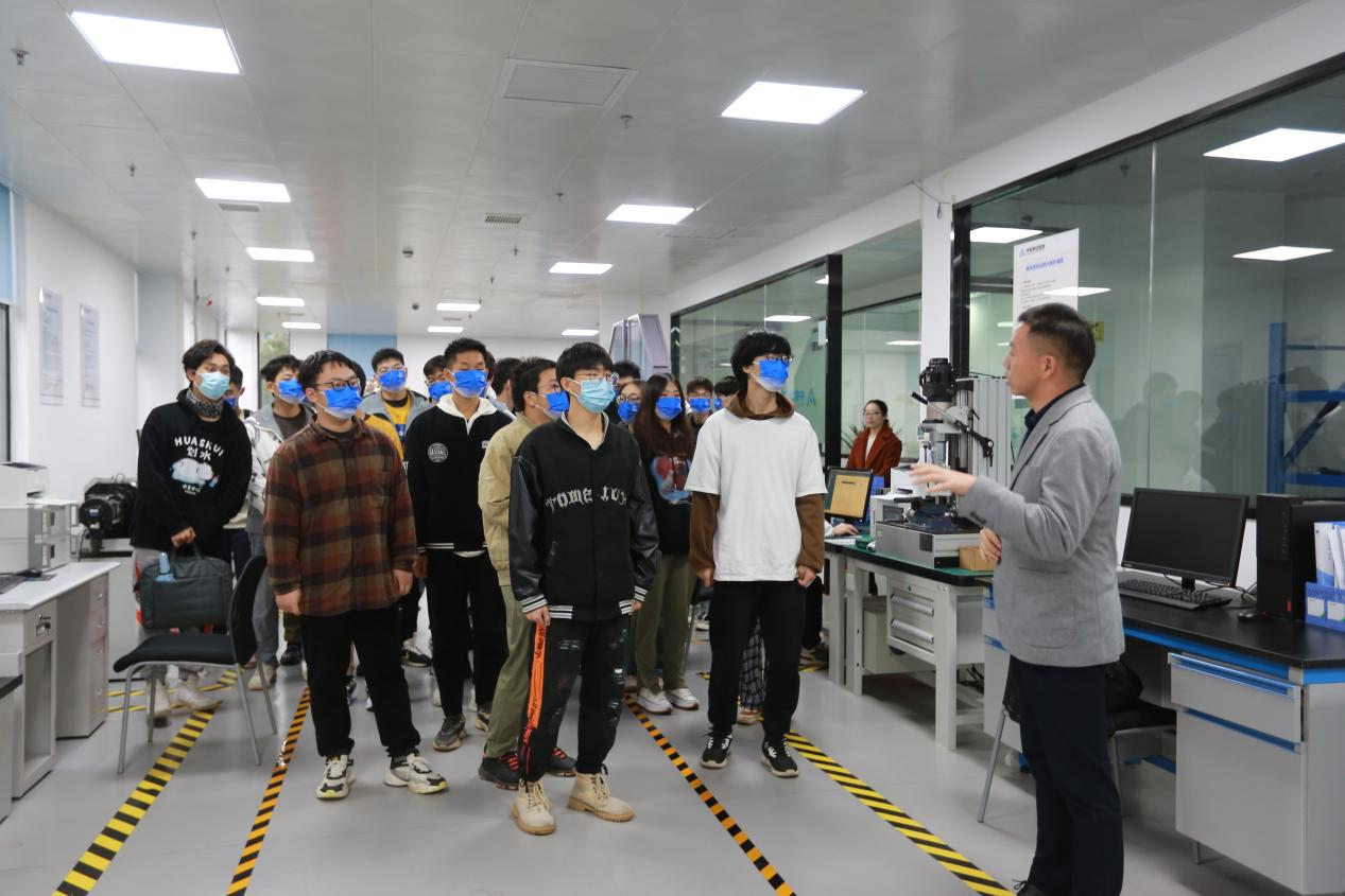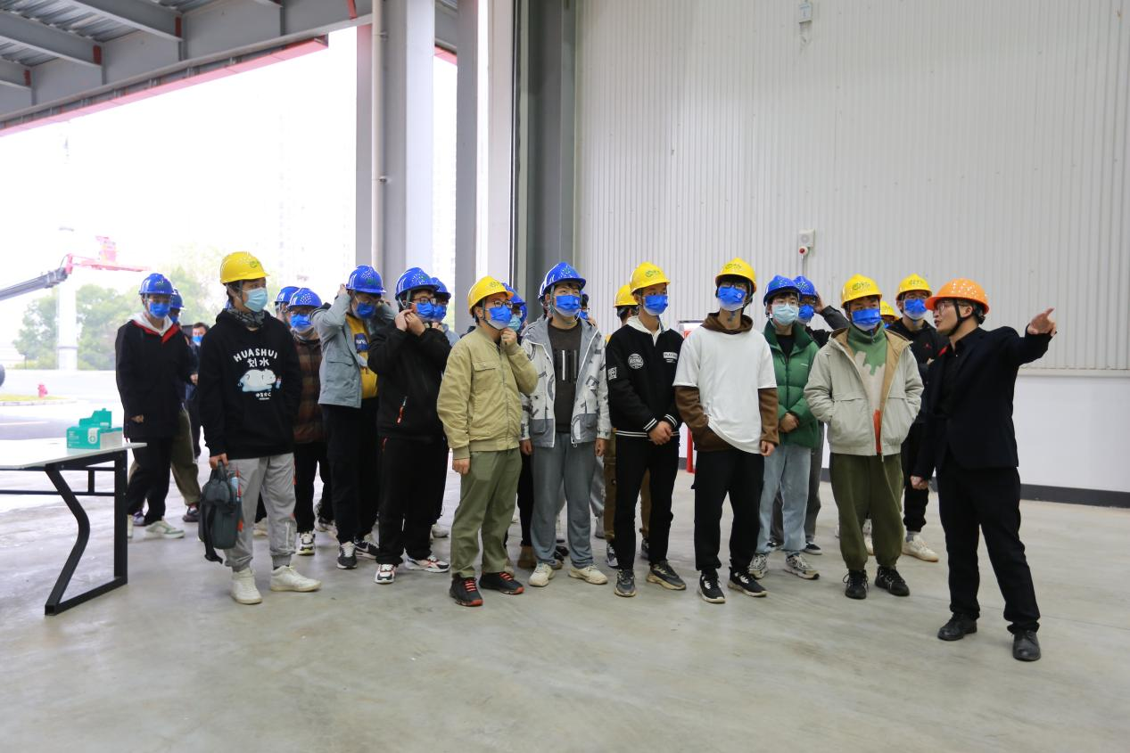 在检测中心院长吕闯和生产副厂长邹贤军的带领下,同学们先后参观了解了中机申亿检测中心和智能工厂,吕闯对检测中心的整体情况进行了介绍,并且向大家详细讲解了紧固件综合性能检测、疲劳实验等检测设备,邹贤君则带领大家参观了正在建设中的生产车间,让大家实地感受申亿智慧工厂的多品种加工、自动化、无人化生产线。