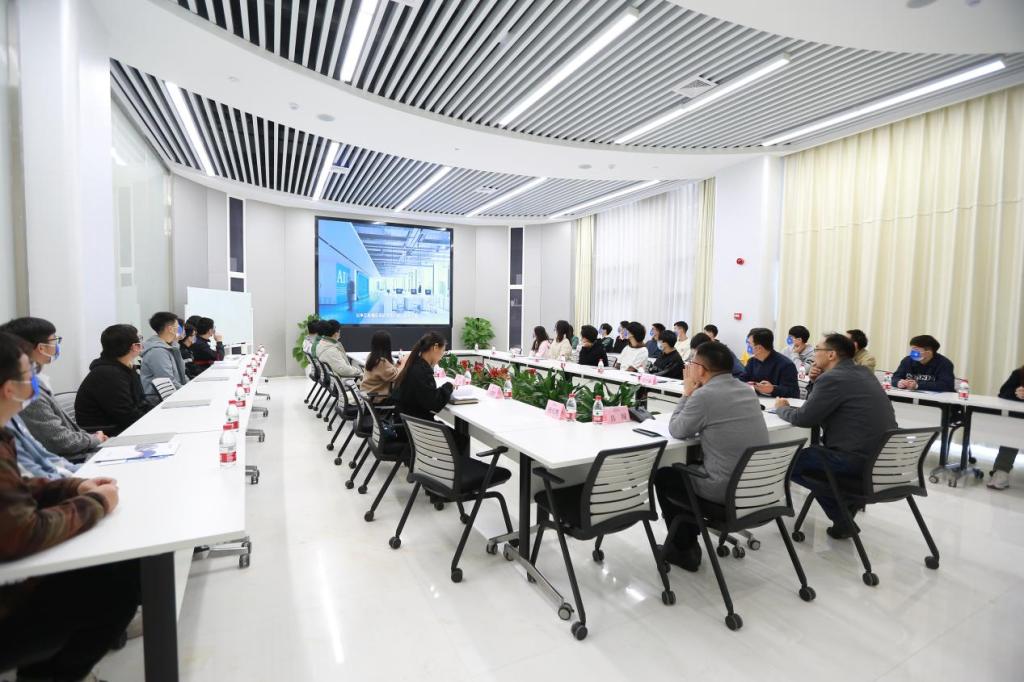 随后,一行人来到申亿研究院,进行座谈交流。座谈会由人力资源经理吴辉主持,总经理刘昆湘,检测中心院长吕闯、检测中心质量经理王馨郁等企业领导参加。首先,与会人员一同观看了申亿宣传片,之后,吕闯向同学们介绍了勤工助学岗位工作内容及要求,同学们在吴辉的组织下进行了包括自我介绍和岗位意向在内的简短的个人陈述。