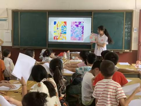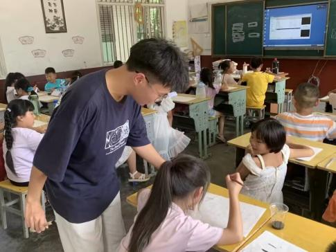 特色课程上,支教队开展了手工、素质拓展、书法、科学、拓扑、音乐等课程。手工课上,张莹老师教孩子们捏粘土、设计自己的粘土作品,激发孩子们的想象力与创造力。书法课上万皓老师教孩子们写毛笔字,让孩子在实践中感受书法的魅力。美术课上唐诗琪老师教孩子们制作彩色的叶子和剪纸画,带孩子们感受线条和色彩的美。素质拓展课上李金科老师带孩子们做科学实验,演示牛奶密信、莫比乌斯环等实验,带领孩子领悟科学的魅力,播下科学的种子。