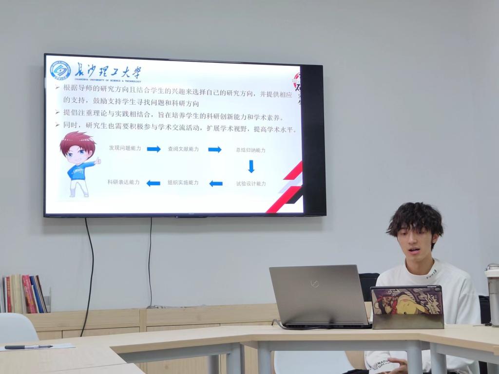 肖淞珂师兄向同学们介绍了本团队内每个老师和他们的研究方向、团队的轻松愉快的氛围以及团队内部的培养模式等,对本课题组的所做项目和研究领域,获得过的荣誉以及毕业生的去向等逐一进行详细讲解,激发同学们对科研工作的兴趣。在实验室师兄的悉心讲解下,同学们对该团队的认知与了解得到了进一步加深,同时肖淞珂师兄也对同学们在宣讲中的关于实验室和自身专业发展方向疑惑对一一解答。