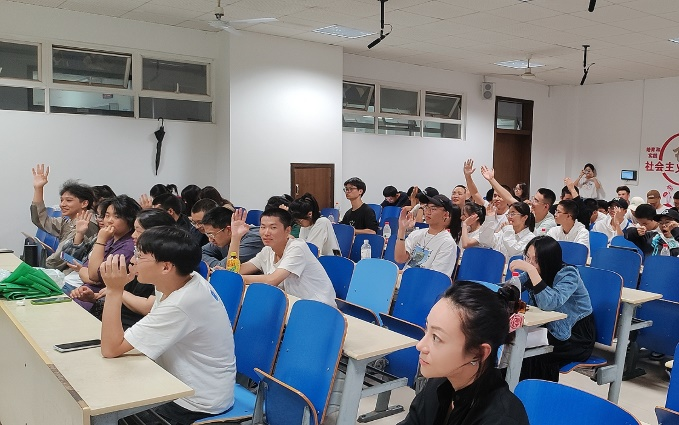 游戏结束后,由心理部干事带领所有参与人员前往综合教学楼C406聆听讲座。心理辅导员用生动形象的事例向同学们普及心理健康方面的相关知识。