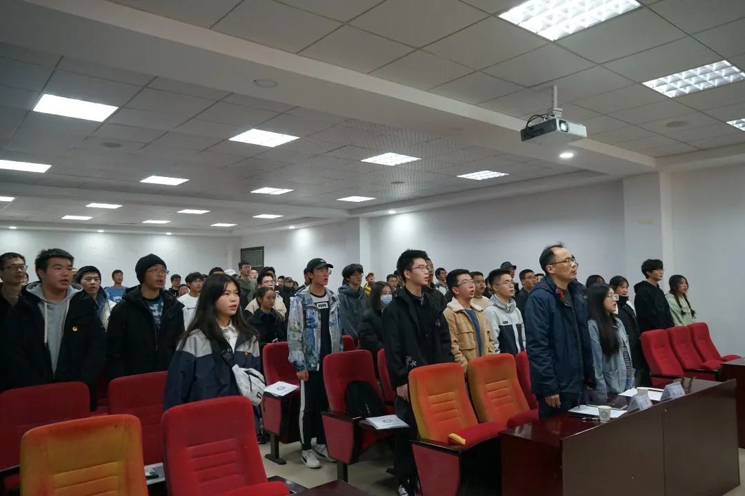 仪式伊始,全体参会人员起立奏唱共青团团歌。接着,院党委副书记唐宏宾老师致辞,对学员们提出要求与期望,希望同学们能够坚定理想信念,加强理论学习,锤炼坚强意志,做一个思想先进、担当大任的新时代青年。