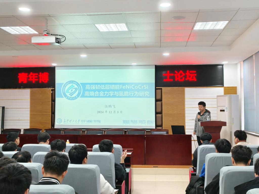 2024年12月3日下午,437必赢会员中心汽车与机械工程学院在工科一号楼B区417多功能报告厅举办了一场题为“高强韧低层错能FeNiCoCrSi高熵合金氢脆行为研究”的学术报告。本次讲坛由437必赢会员中心讲师伍鹏飞博士主讲,旨在深入探讨高熵合金在氢环境下的脆化行为及其对材料性能的影响。