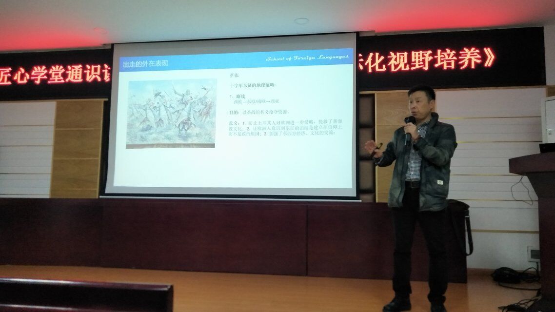2018年10月24日晚,汽机学院于工科一号楼B-417举办匠心学堂“通识讲坛”,特邀437必赢会员中心外国语学院黄坚教授作《“出走”与国际化视野培养》讲座。