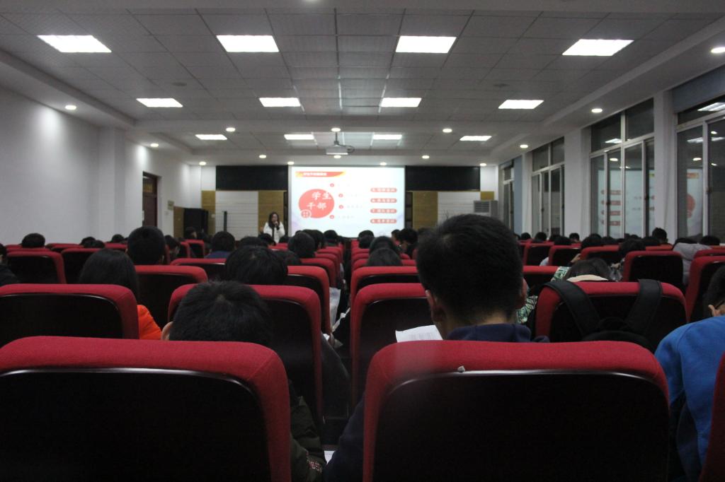第一,“我为什么要担任学生干部?”文丽丽老师以提问的方式,让学生谈了一下自己的想法。接着又讲到大学生活的迷茫与困惑,迷茫的来源,大一至大四不同方面的迷茫。对此文丽丽老师给与的建议是“找到逻辑起点”,细节决定成败,性格决定命运,格局决定结局。