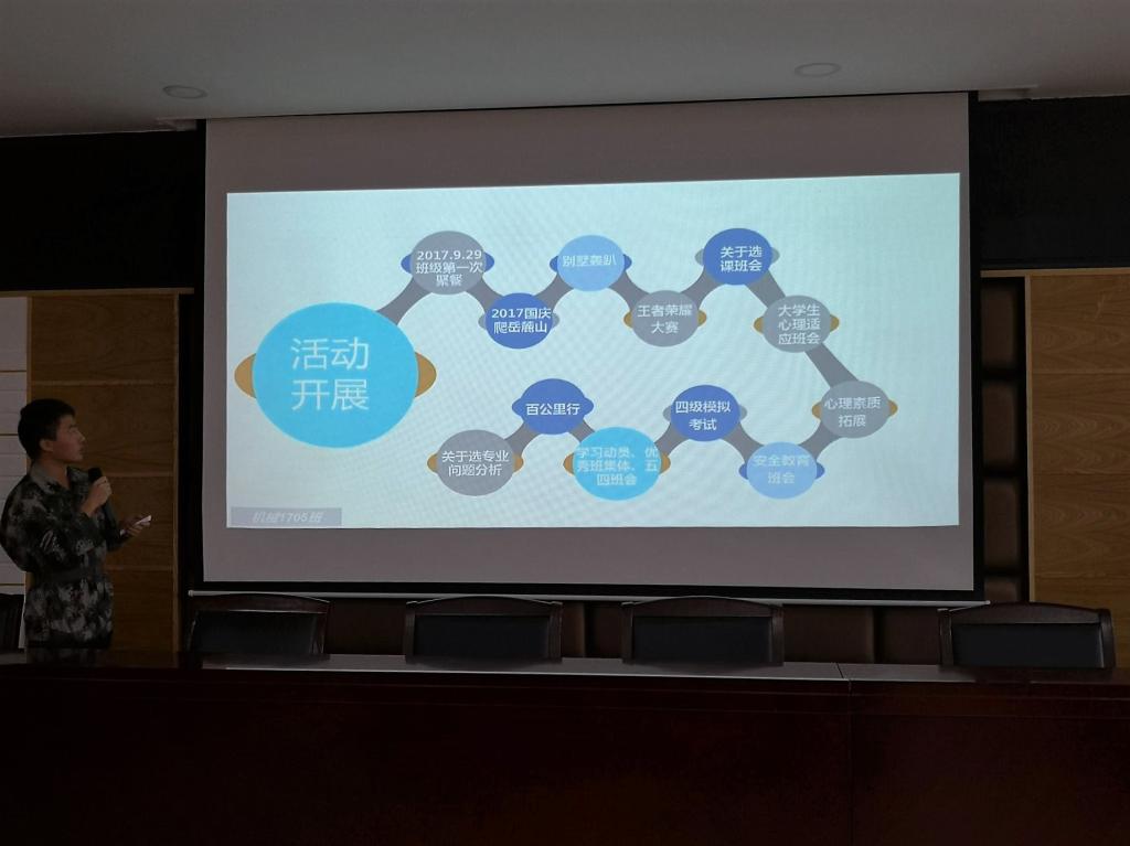 我院2017-2018学年先进班集体答辩会在紧张而又热烈的气氛中圆满结束。此次答辩促进了各个班集体之间的交流和学习,更好地发挥了优秀班集体的模范带头作用,有利于推动我院学风、班风建设,营造了积极进取、博学竞先的良好氛围。