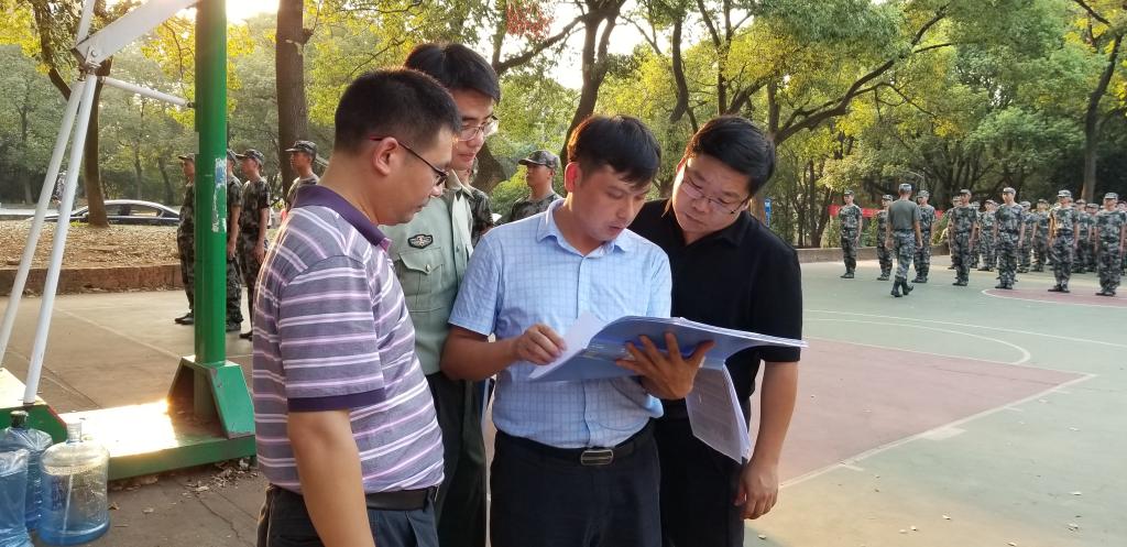 军训场地上,参训新生口号响亮、斗志昂扬。院领导一行观摩了学生训练,向带训辅导员详细了解了军训工作开展情况,并与带训教官和参训新生亲切交流。
