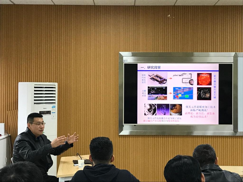 2019年11月26日上午10点,石峰研究员在云塘校区工科一号楼B411学术报告厅做题为“强光元件超精密加工技术”的学术报告。毛聪院长主持此次报告,汇报人石峰为工学博士、研究员、研究员生导师、国防科技大学智能装备精密工程研究室主任。学院20余名教授、博士以及70余名研究生参加了本次讲座。
