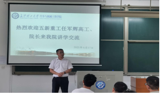 2021年6月17日上午,湖南中铁五新重工有限公司研究院院长任军辉高工应邀来我院,开展主题为“港口码头起重运输装备的研究现状与发展趋势”的机械类企业课程教学。本次报告由汽机学院副院长毛聪教授主持,2020级机械类专业硕士研究生参加了此次教学。