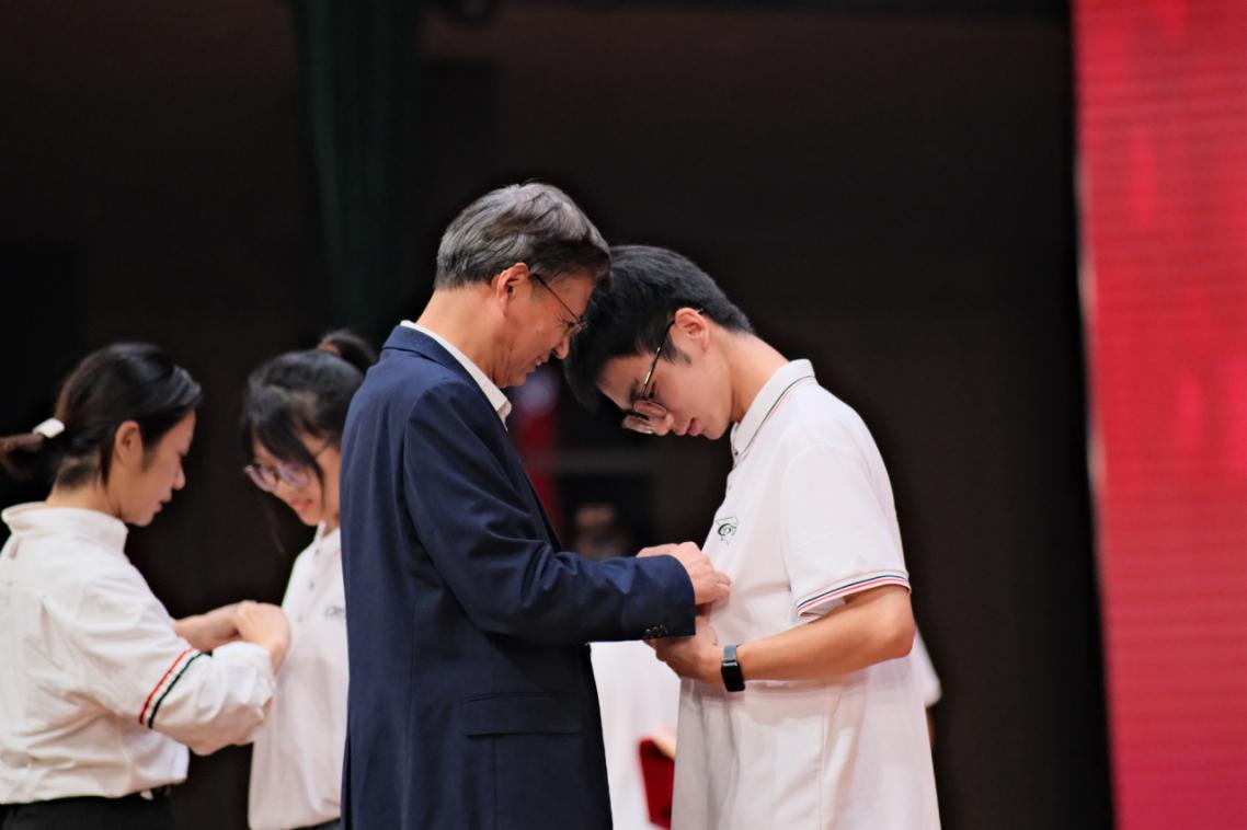 在校徽佩戴仪式上,院领导和新生班主任为新生代表佩戴校徽,这枚小小校徽承载着长理精神,激励新生砥砺前行。戴上校徽后,全体新生起立进行入学宣誓。誓言铿锵有力,展现出新生们对未来成长成才的坚定信心。