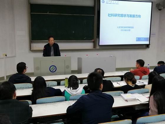 10月21日晚,必赢官网2018年岗前培训科研专题讲座在金盆岭校区6教107举办,校人文与社会科学研究处处长卿定文教授、科学研究部副部长关宏信教授受邀主讲,人事处副处长徐欣国及全体培训学员参加了专题讲座。