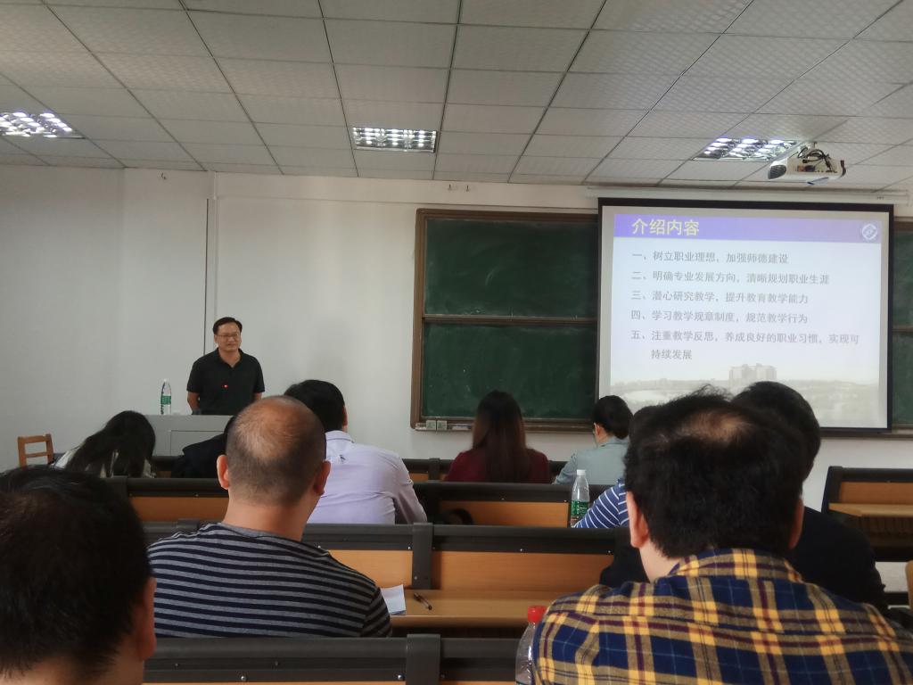 10月20日下午,必赢官网教务处处长刘朝晖教授受邀为2019年岗前培训班作了题为“新入职教师从事教学工作应该做些什么?”的专题讲座。