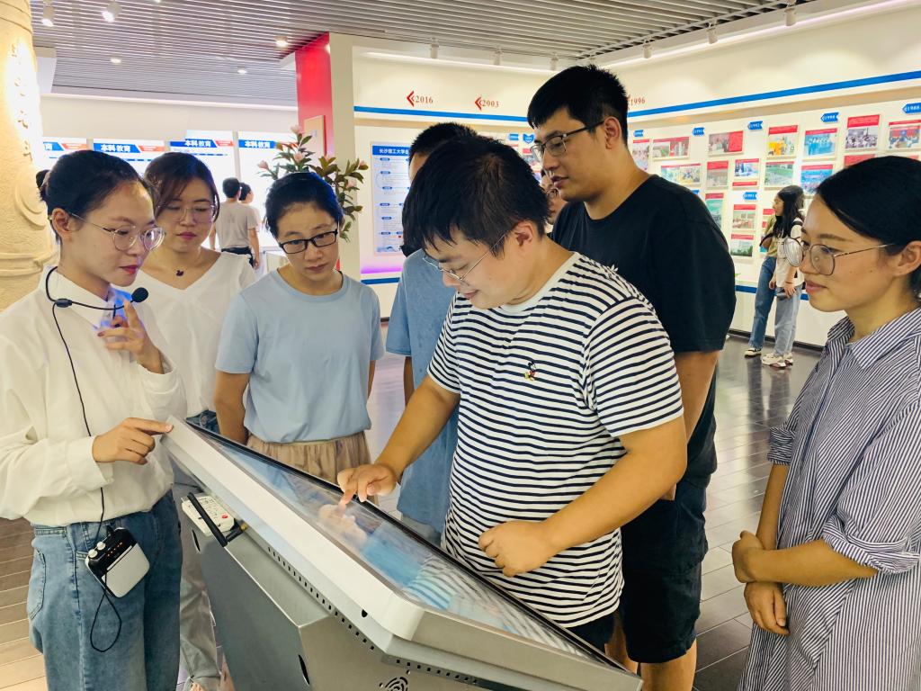 伴随着讲解员声情并茂的讲解,新入职教师们兴致勃勃地参观了历史沿革、人才培养、学科建设、科学研究、对外交流、党建引领等六个展厅。从优秀校友题作的“长理赋”,到学校历史沿革的照片展廊,再到优秀科研成果、社会服务成果陈列,教师们感悟着学校一路走来的艰辛与不易,也敬佩着长理前辈们干事创业的实干担当,服务长理、贡献社会的使命让他们倍感光荣。