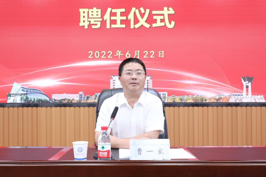曹一家作了题为《奋进新征程,体现新担当,展现新作为,书写新时代高校教师立德树人的华丽篇章》的讲话。他表达了对收获一批教师成长硕果的激动之情,并充分肯定了新晋高级职称教师在立德树人、科研创新等方面取得的优异成绩和为学校建设发展做出的贡献。他强调,要深刻认识职称评聘在学校人才队伍建设中的重要地位;要立足学校现状,服务一流学科、一流专业等建设发展,加大人才培养支持力度,在促进人才队伍健康稳定发展中体现新担当;要赓续前行,心怀“国之大者”,在落实立德树人根本任务中展现新作为。