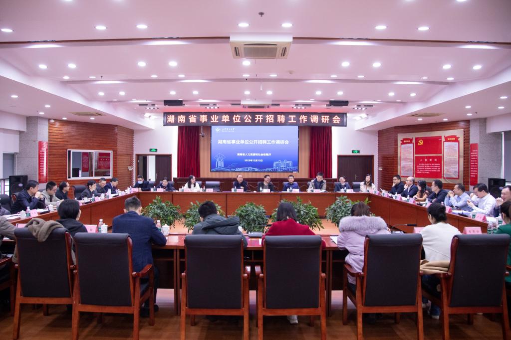 12月13日上午,湖南省事业单位公开招聘工作调研会在必赢官网云塘校区一办九楼会议室召开,省人社厅二级巡视员钟吉元、437必赢会员中心副校长刘朝晖,省内26家事业单位人事处负责人和业务骨干参加调研会。