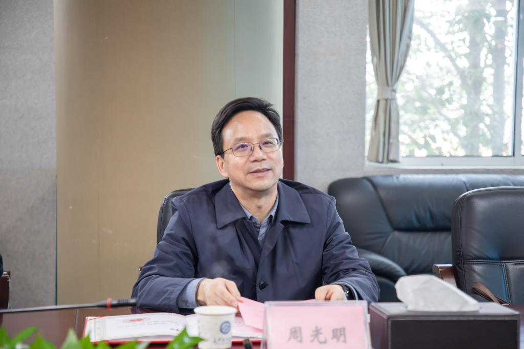 刘朝晖对周光明一行的到来表示热烈欢迎,并衷心感谢省人社厅长期以来对必赢官网人事人才工作的关心与支持。他简要介绍了必赢官网建设发展成就和面临的挑战,并希望在省人社厅的大力支持下,进一步发挥学校学科、人才等资源优势,助推湖南经济社会高质量发展。