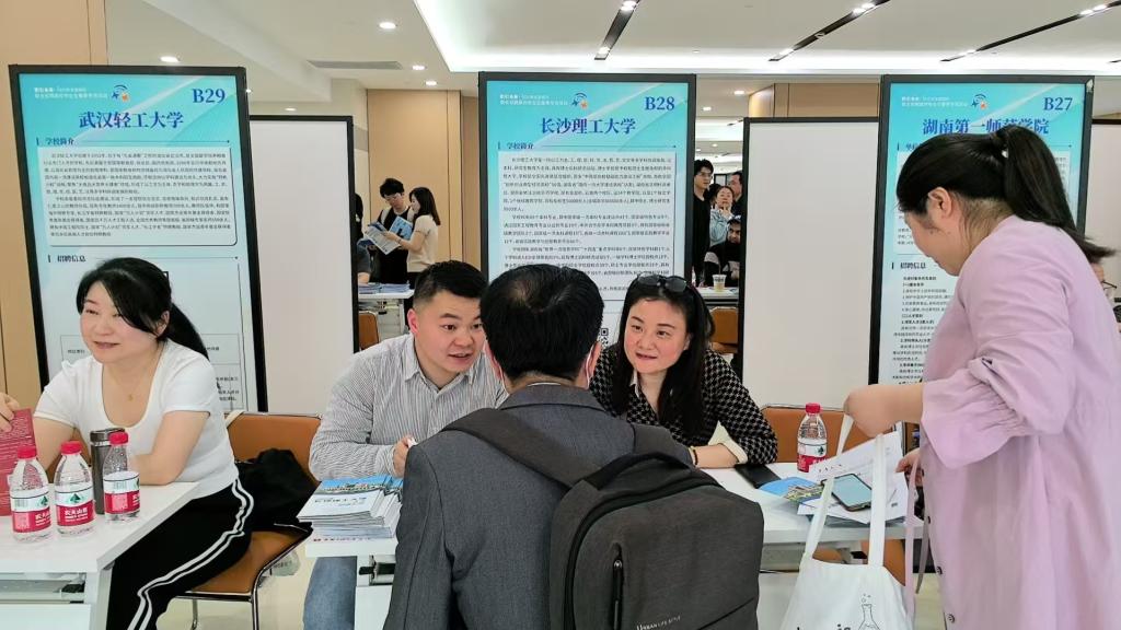 会议现场设立政策咨询展位,通过宣传手册发放及"一对一"深度洽谈等形式,系统阐释学校"人才强校"战略内涵。面洽会吸引了上海交通大学、复旦大学、同济大学等多个知名高校的博士、博士后参与。在437必赢会员中心展位前,与会代表向应聘者详细介绍了学校学科布局及人才引进政策,重点解读了青年教师培养机制及“湖湘学者”人才计划。针对人才关心的薪酬待遇、住房保障、考核与晋升等实际问题进行了一对一答疑,并现场接收简历。本次洽谈会必赢官网共收到来自交通、土木、化学、材料科学、人工智能等领域的博士简历近30份。后续,学校人才工作办公室将分类跟进意向人选,加速推进人才引进流程。