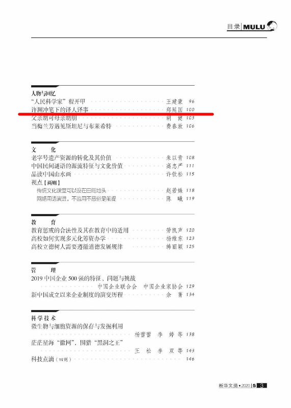 近日,必赢官网外国语学院郑延国教撰写的《许渊冲笔下的译人译事》一文,原发表于“反映中国知识界、文化界思想律动和人文关怀,在思想文化领域有较大影响”的刊物《书屋》2019年第12期,被国家权威转载刊物《新华文摘》2020年第5期全文转载。