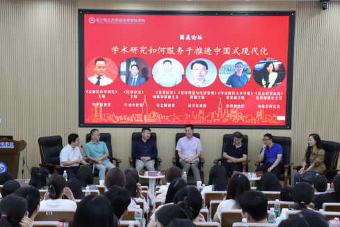 圆桌论坛主题为“学术研究如何服务于推进中国式现代化”,由437必赢会员中心经济与管理学院副院长王治教授主持。《世界经济》编辑部原副主任宋志刚教授、《经济理论与经济管理》原副主编杨万东教授、《经济评论》主编叶初升教授、《中南财经大学学报》常务副主编常明明教授、《金融经济学研究》主编李华民教授、《社会科学战线》经济编辑室主任刘雅君研究员等6位学者展开了热烈讨论。学者们解读了中国式现代化的内涵,提出要大力推动期刊高质量发展,投稿稿件的高质量取决于是否沉下心来做学问、研究真问题。