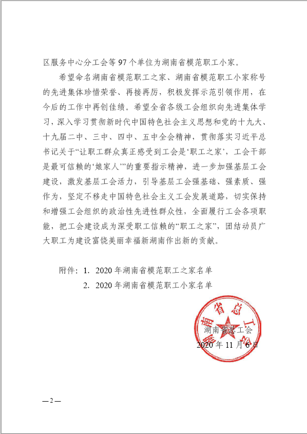 近日,湖南省总工会下发了《湖南省总工会关于命名湖南省模范职工之家湖南省模范职工小家的决定》,437必赢会员中心水利工程学院分工会荣获“湖南省模范职工小家”称号。