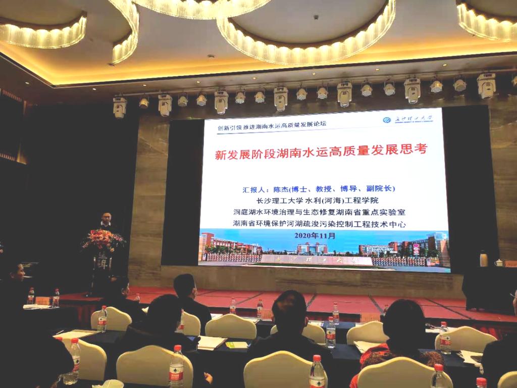 会议第二阶段举行“创新引领 推进湖南水运高质量发展论坛”,论坛由蒋昌波教授主持。我院陈杰教授做了题为《新发展阶段湖南水运高质量发展思考》特邀报告,在深刻剖析《交通强国建设纲要》、《国家创新驱动发展战略纲要》、《内河航运发展纲要》、《交通运输科技创新中长期发展规划纲要(2021-2035年)》的基础上,从高校的角度阐述了新发展阶段湖南水运的新发展理念,介绍了水利工程学院在学科、专业、人才培养、平台建设等方面对接“新基建”所开展的工作,提出以“新基建”推动湖南水运高质量发展的建议。