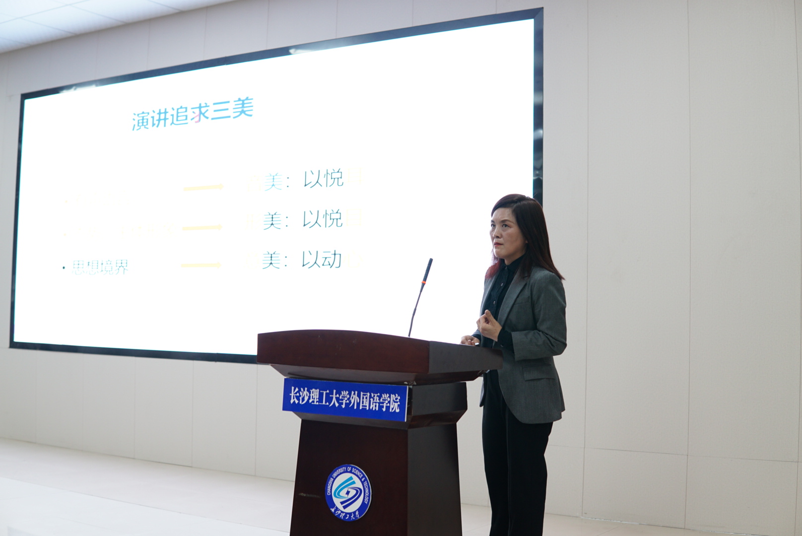 为帮助水利特岗生提高表达能力和演讲技巧,12月5日下午,水利与环境工程学院在文科楼A100举行水利特岗生素质提升工程专题培训,本次课程特邀湖南女子学院刘黎教授主讲《演讲有声表达艺术之二》,学院党委副书记银波、学工办老师刘灿、甯子豪、王正博和水利特岗班全体同学参加此次培训课程。