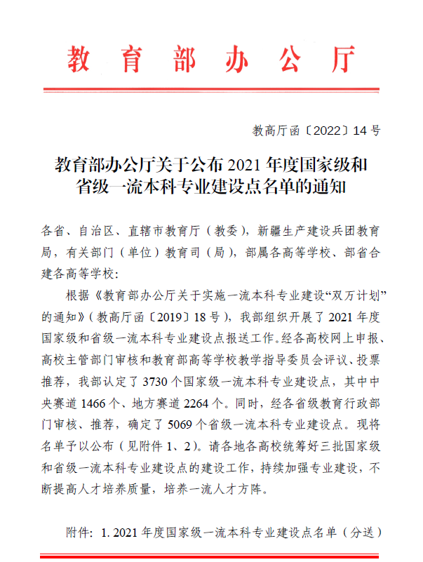 日前,教育部办公厅印发了《关于公布2022年度国家级和省级一流本科专业建设点名单的通知》,其中,我院“给排水科学与工程”专业获批成为国家级一流本科专业建设点。