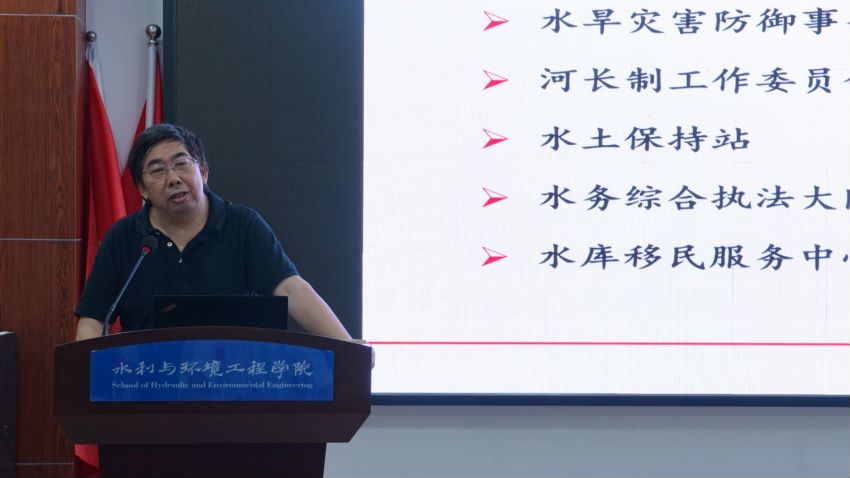 指导老师苏忖安介绍了市区(县)水利局职责、机构,并强调了实习注意事项,要求同学们尊重单位安排,听从老师指导,做好好学上进、吃苦耐劳,特别强调实习安全,注意饮食安全、交通安全,严禁下河游泳。