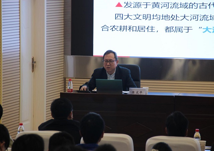 陈文平从我国治水历史入手,分别从湖南省水利基本情况、习近平总书记关于治水的重要论述、胸怀远大理想,建设美丽家乡三个部分展开。结合湖南省水利、水资源、洪旱灾害和水利建设情况,陈文平详细介绍了湖南“一湖四水”即洞庭湖与湘江、资江、沅江、澧水四条河流的建设发展历程,指出“防治水患和兴修水利”的重要性,针对当前仍存在水安全保障能力问题提出了规划思路。他强调“善治国者必重治水”,详细讲解了习近平总书记关于治水的重要论述,提出要国家、社会、个人三个层面做到合理利用水资源,提升节约用水的意识,实现水资源可持续发展。他系统梳理了党的二十大报告中有关水利工作的知识点,寄语水利学子牢记习近平总书记“守护好一江碧水”的殷殷嘱托,肩负起“治水、兴水”的责任使命,夯实专业基础知识、关注水利事业的未来发展,为美丽中国建设添砖加瓦。