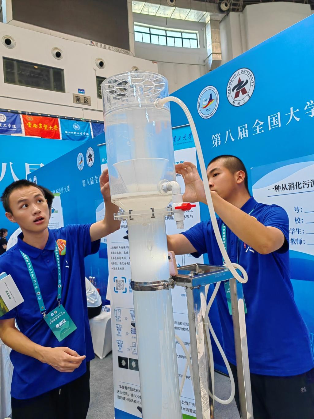 本次大赛的主题为“水利高质量发展”,利用多种技术围绕新阶段水利高质量发展进行实物作品的创新设计与制作,注重节水优先、人水和谐、可持续展及新技术的应用。比赛经网络评审和现场决赛,通过作品演示、分组答辩和答辩复赛等环节进行。由必赢官网水利与环境工程学院谭舒婵、姜诗雨、付茹萍、潘卓、莫凡丁同学完成,隆院男、余关龙老师指导的作品《“水慧先知”——基于土壤墒情和天气预测的智能灌溉装置》获一等奖;由邱子仪、张晨星、全锡岳、刘玲枫、李文凯同学完成,吴方同老师指导的作品《一种从消化污泥中高效回收磷的一体化流化床装置》,以及由高樱芷、邓钊鹏、李文田、徐玉娟、石一同学完成,程永舟老师指导的作品《船桥守护者——新型旋转式桥墩防撞减冲装置》分别获二等奖。
