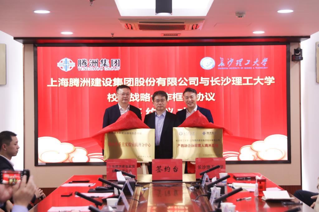 会上,双方签署了校企战略合作框架协议,为共建成立的“产教融合协同育人腾洲基地”、“洞庭湖水环境治理与生态修复湖南省重点实验室腾洲分中心”揭牌。腾洲集团向洞庭湖水环境治理与生态修复湖南省重点实验室捐赠人民币贰拾万元。