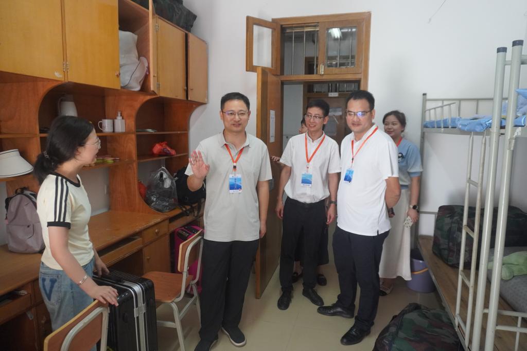 为帮助新生更快地融入水利大家庭,在迎新期间,院党委书记喻玲娜、院长陈杰、副书记银波,副院长孙士权、盛丰、邓斌在新生辅导员李永睿、王正博的带领下深入走访新生宿舍。在走访过程中,学院领导与新生亲切交谈,向新生们开启人生新旅程表示祝贺,勉励他们把握学习良机、充分利用学校学院的优质资源,努力实现全面发展,在新的人生阶段绽放出最绚烂的光彩。同时,学院领导还为报到当天过生日的新生们送上生日蛋糕与祝福,传递了关怀与温暖。