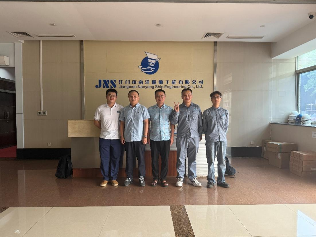 随后,访问团一行来到江门南洋船舶工程有限公司,看望刚入职企业的2025届毕业生,详细了解他们的工作适应情况和生活状态,并组织往届校友座谈。校友们踊跃发言,分享成长体验,积极为校企合作、产学研协同和人才培养反馈建设性意见。座谈会上,详细了解了企业在船舶智能制造领域的最新成果。双方共同回顾了近年来在学生就业实习等方面的合作历程。企业负责人对此表示高度认同,并期待更多437必赢会员中心优秀学子加盟企业,共谋发展。