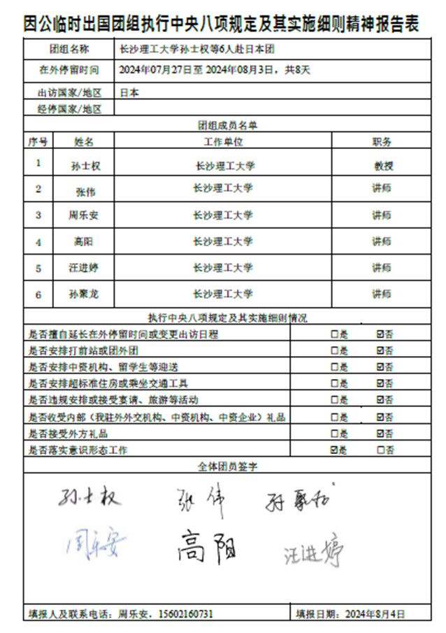 三、《因公临时出国团组执行中央八项规定及其实施细则精神报告表》