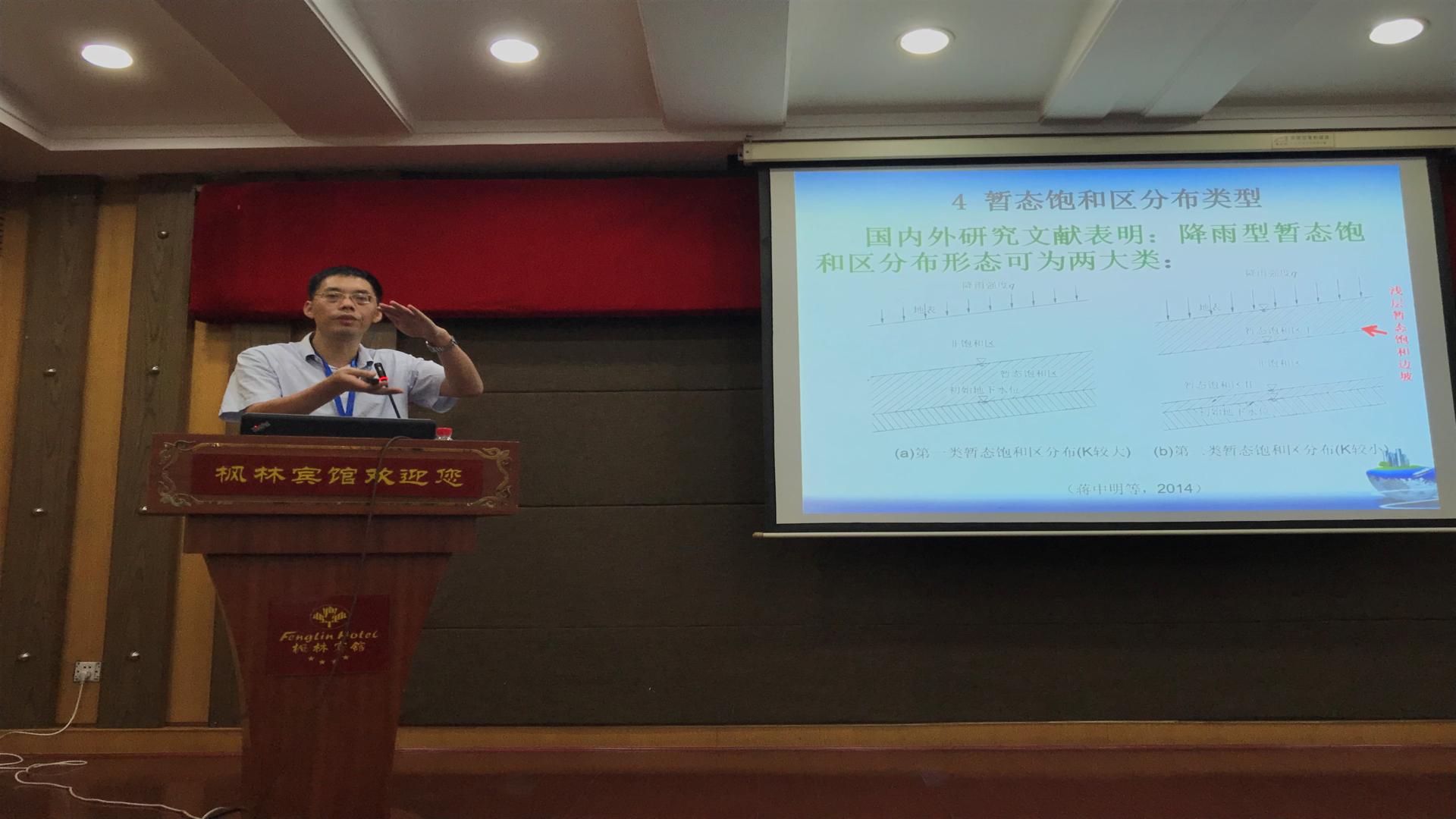 我院蒋中明教授受邀在会议上做学术报告,报告内容为《浅层暂态饱和边坡稳定性分析方法研究》,报告内容介绍了蒋中明教授多年来边坡工程中的所做的大量工作和研究成果,他的报告得到了参会代表的高度赞赏。同时,我院张贵金教授受邀作为分会场主持人,水利水电系多位老师和研究生也参加了此次学术会议,同其他参会代表进行了广泛交流,收获颇丰。