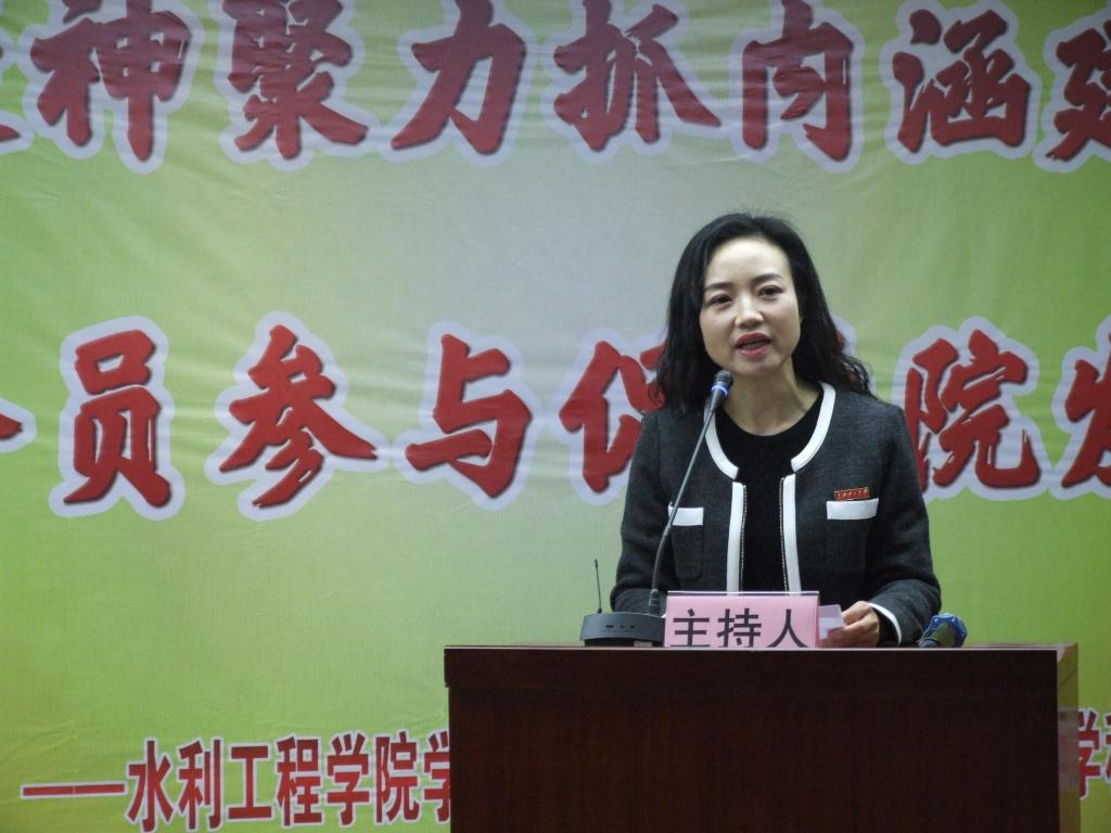 首先,校党委书记付宏渊发表了重要讲话。付宏渊总结了2017年学校完成的三件大事,并指出水利工程学院在学校的三件大事中均做出了重要的贡献,对学院2017年取得的成绩给与了充分的肯定,对今后学院的发展指明了方向,并给出了宝贵的建议和意见。