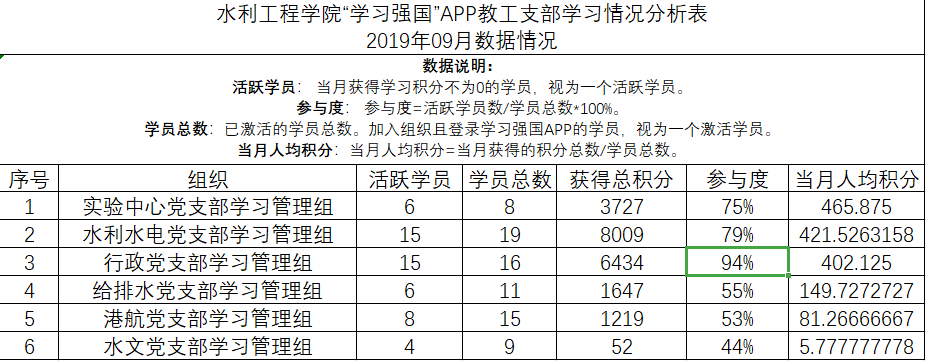 通过比对9月2日及10月7日两个日期每个支部党员在“学习强国”平台上的学习分数,得出了9月份我院党员的学习情况,现将评比结果通报如下。