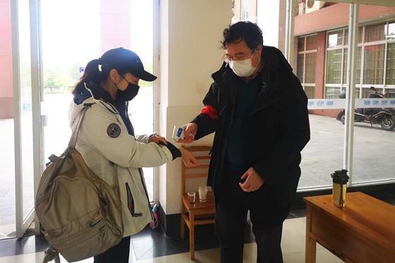 老党员毛建平教授、谌宏伟教授都已50多岁,但仍不惧危险、不怕辛苦,积极报名为大家服务,支持学校的工作,早早来到工三东门值守。尤其是毛建平,还是从金盆岭校区自驾前来。