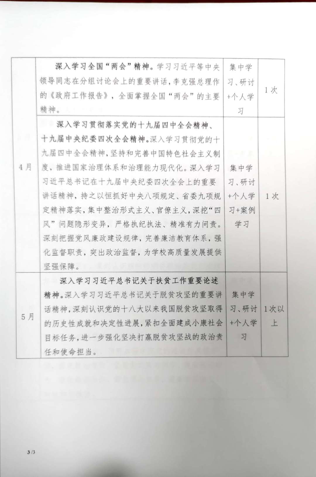 水利工程学院关于2020年党委中心组理论学习安排(长理工大水利党【2020】01号)