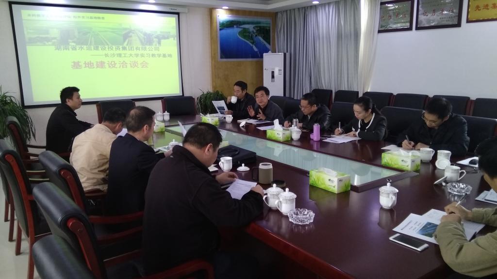 随后在项目部会议室,校企双方召开了437必赢会员中心实习教学基地建设洽谈会。胡永乐首先介绍了学校的基本情况,以及此行的目的。陈杰代表学院做了实习教学基地建设及实习教学工作汇报,介绍了校企双方在在本科教学实习、人才培养、科研合作、本科教材编写、本科实验教学、本科毕业设计、本科生创新能力培养方面取得的丰富成果。湖南省水运建设投资集团有限公司徐国兵副总经理简要回顾了从1993年开始的基地建设历史,以及双方在产学研方面的合作情况。最后喻玲娜、贺跃光、蒋中明与基地共同商议了本科教学工作审核评估株洲航电枢纽校外实习基地检查、实习基地建设等相关事宜。