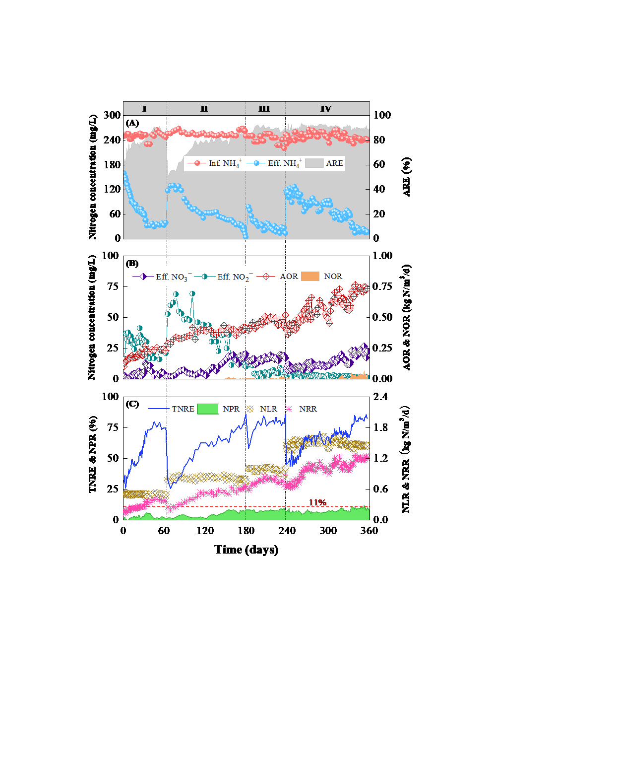 该论文针对一段式自养脱氮工艺在实际应用中启动慢和稳定性差的问题,自主设计研发了内外分层、溶解氧分区的气升式内循环生物反应器,并开展了长达360天的连续性实验研究。文章考察并验证了自制反应器的溶解氧分区效果,监测了长期运行过程中自养脱氮性能的变化,进一步分析了工艺稳定性影响因子及控制水平。通过对污泥形态结构、组分含量和微生物多样性及群落结构演替的解析,揭示了自养脱氮颗粒污泥体系内功能微生物的协同脱氮机制。该研究结果为一段式自养脱氮工艺的工程化应用提供理论指导和技术支持。本研究得到了湖南省科技厅(2022SK2091, 2020JJ4602, 2020JJ4617)和湖南省教育厅(20A002)科研项目的资助。