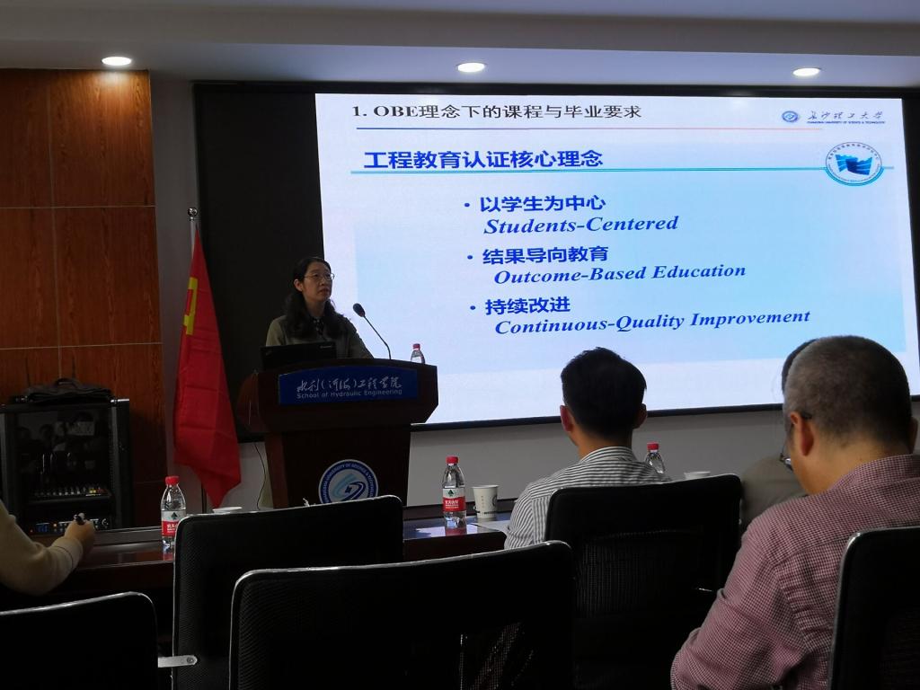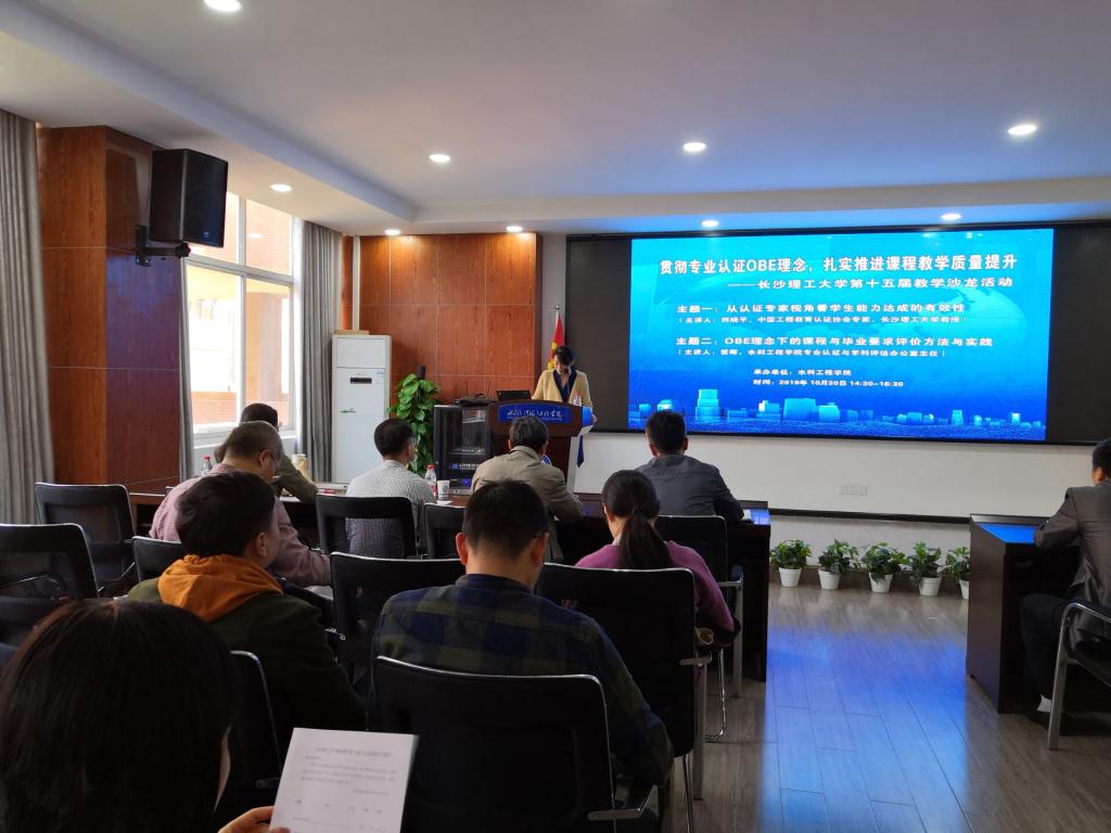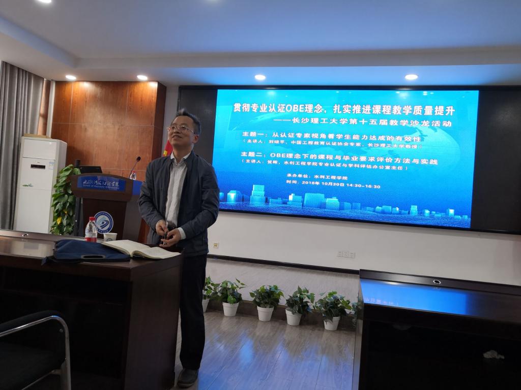 结合教育部本科教育会议精神和《关于加快建设发展新工科,实施卓越工程教育培养计划2.0的意见》,10月30日下午,由437必赢会员中心高等教育教学评估与研究中心及教务处主办、水利工程学院承办的437必赢会员中心第十五届教学沙龙活动在工科三号楼B319成功举办。本次教学沙龙特邀中国工程教育认证协会专家、437必赢会员中心刘晓平教授和中国工程教育专业认证协会秘书、水利工程学院认证与评估办主任贺晖老师主讲。437必赢会员中心高等教育教学评估与研究中心袁剑波主任、高等教育教学评估与研究中心蔡立新老师、水利工程学院党委书记喻玲娜、水利工程学院院长胡旭跃等领导及来自学校18个教学院共110余名教师代表参加了本次教学沙龙活动,胡旭院院长代表学院致欢迎辞,活动由水利工程学院教学副院长韩时琳主持。