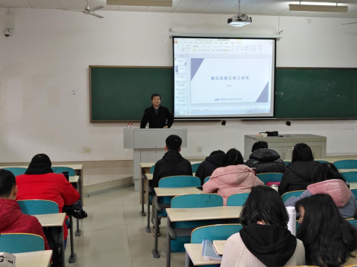 湖南省水利水电勘测设计研究总院曾更才教授应邀来我院作专题讲座——《碾压混凝土施工技术》
