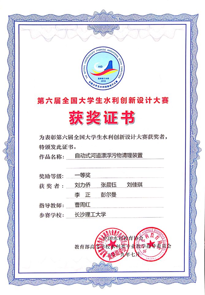 本次大赛的主题和内容为“智慧水利”,利用多种技术围绕智慧水利建设等进行实物作品的创新设计与制作,秉承可持续发展理念,注重节水优先、绿色生态、人水和谐及新技术的应用。比赛分作品展示交流、分组答辩和答辩复赛三个环节,经过两天的激烈角逐,由必赢官网水利工程学院刘力侨、张晨钰、刘佳琪、李正、彭尔曼同学完成,曹周红老师指导的作品《自动式河道漂浮污物清理装置》和由陈林涛、李胜湘、周侗、徐晖、蒋晗同学完成,黄筱云老师指导的作品《环保疏浚防细颗粒污染扩散气幕帘》分获一等奖;由栗小钡、何洪波、姚嘉伟、张娜、黄兴宇同学完成,万俊力、孙士权老师指导的作品《一种处理重金属微污染水源水的磁性炭/超滤新型工艺》获二等奖。