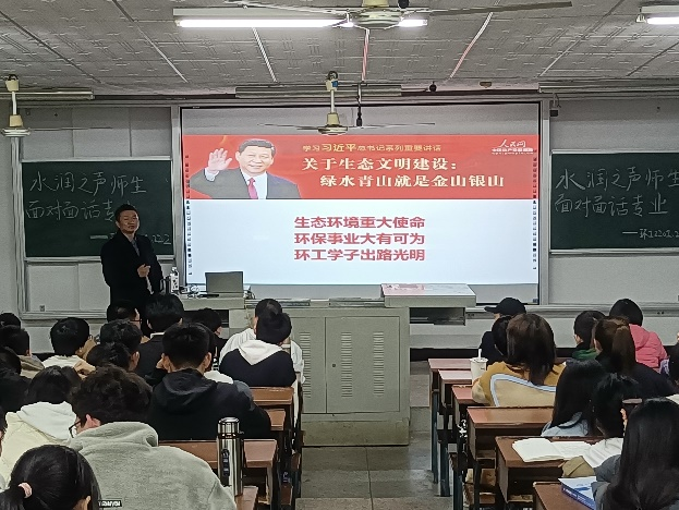 讲座的最后,陈宏教授指出环境专业与生态文明建设息息相关,勉励青年学子须担当有为,把个人理想追求融入到党和国家的事业中去,潜心学习、执着创新,为守护碧水蓝天贡献自己的力量。陈宏教授的分享交流内容丰富新颖,广大师生聆听讲座之后都表示受益匪浅。在讲座结束后,环境工程系教研室的各位老师也与环工22-1、2班的同学进行了面对面地答疑和交流,通过前辈指导与朋辈交流,进一步增强了大家对于环境科学与工程专业现状与未来发展趋势的了解,鼓励更多学生选择与国同运,为国家的生态文明建设贡献力量。