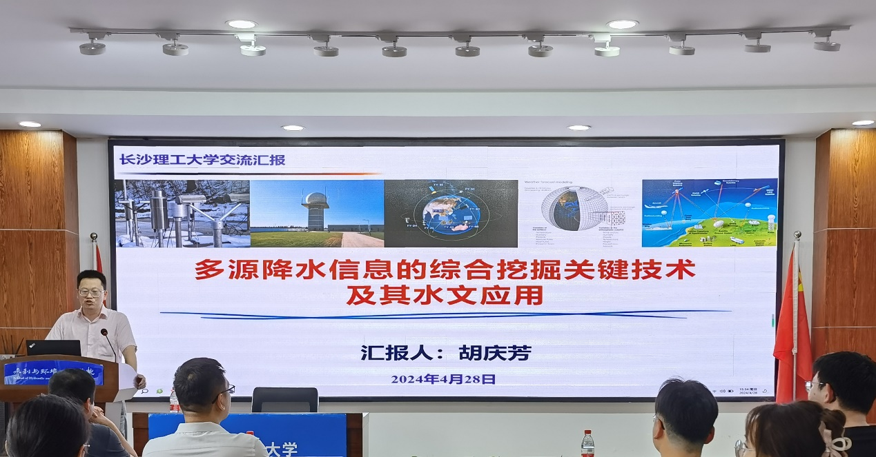2024年4月28日下午,应437必赢会员中心水利与环境工程学院邀请,南京水利科学研究院水文学理论与方法研究室副主任胡庆芳正高级工程师在云塘校区工科三号楼B319,为必赢官网师生进行题为“多源降水信息的综合挖掘关键技术及其水文应用”的学术交流讲座。会议由水利与环境工程学院邓斌副院长主持,100余名师生聆听讲座并参与讨论。