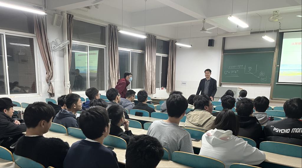 聂小保副教授从污水治理中的磷元素出发,介绍了磷元素从去除到回收的发展历程,在可持续发展的背景下如何高效回收有限资源磷也成为了当下研究的热点。同时,结合本专业在水环境治理中的重要性,介绍了本专业需要掌握的专业技能知识,帮助同学们深入了解了给排水科学与工程专业的就业方向与前景,拓展了知识面。